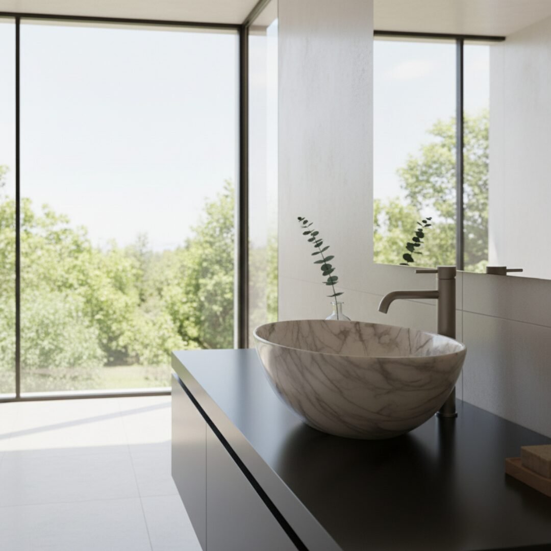 Elevate your space with this modern oval wash basin. Crafted from high-quality ceramic with a stunning amber-toned marble effect, it offers the beauty of stone with the practicality of ceramic. The unique veining creates a warm and sophisticated focal point for your bathroom.