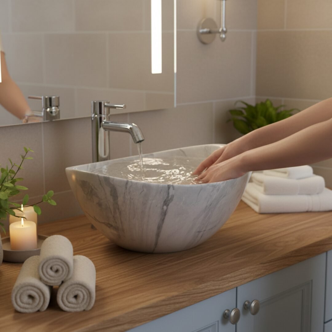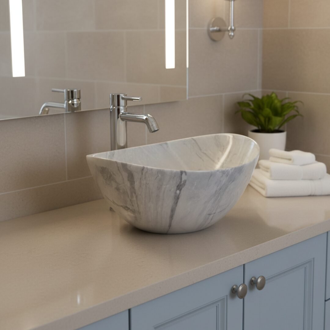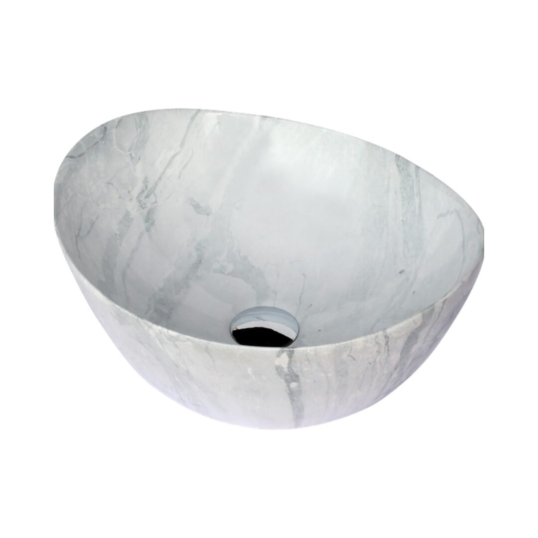 Elevate your space with this modern oval wash basin. Crafted from high-quality ceramic with a stunning amber-toned marble effect, it offers the beauty of stone with the practicality of ceramic. The unique veining creates a warm and sophisticated focal point for your bathroom.