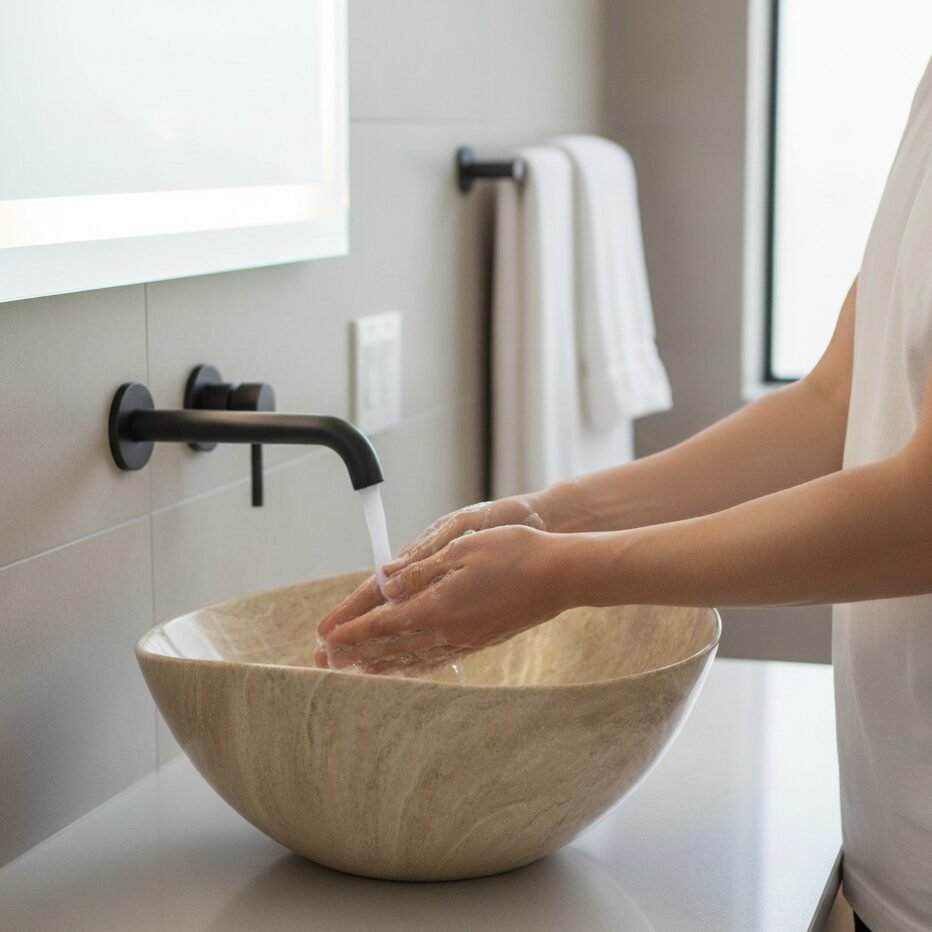 Elevate your space with this modern oval wash basin. Crafted from high-quality ceramic with a stunning amber-toned marble effect, it offers the beauty of stone with the practicality of ceramic. The unique veining creates a warm and sophisticated focal point for your bathroom.