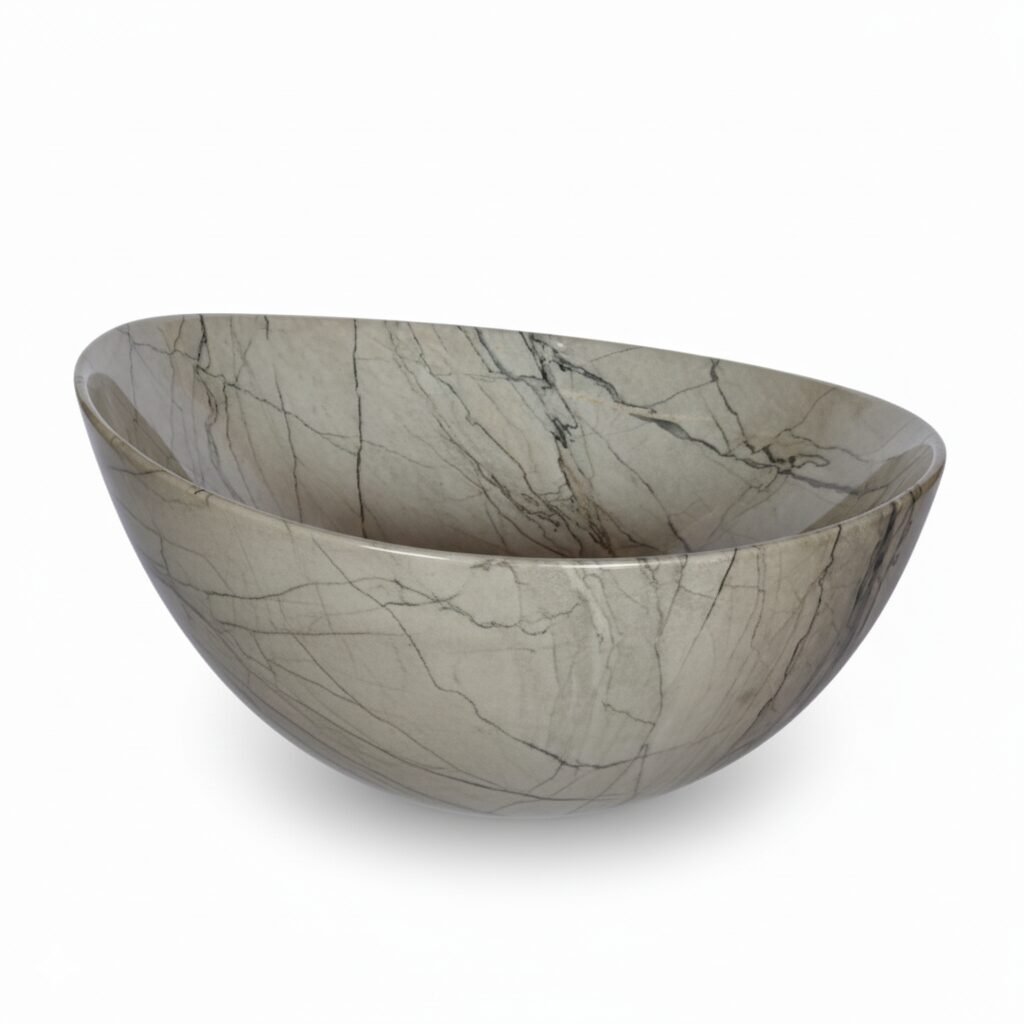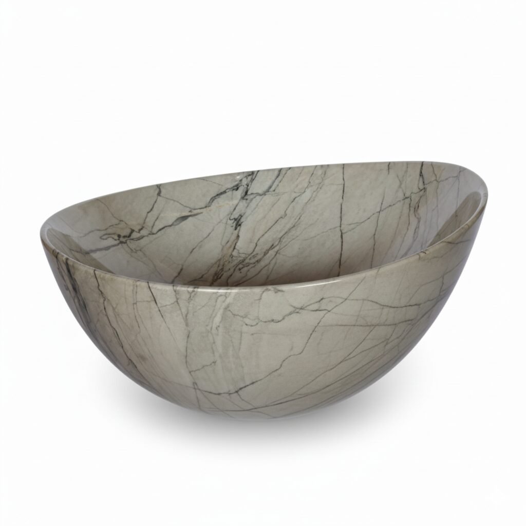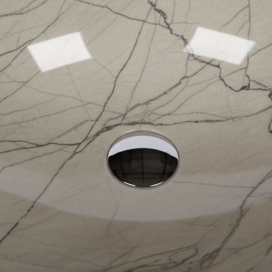 Elevate your space with this modern oval wash basin. Crafted from high-quality ceramic with a stunning amber-toned marble effect, it offers the beauty of stone with the practicality of ceramic. The unique veining creates a warm and sophisticated focal point for your bathroom.